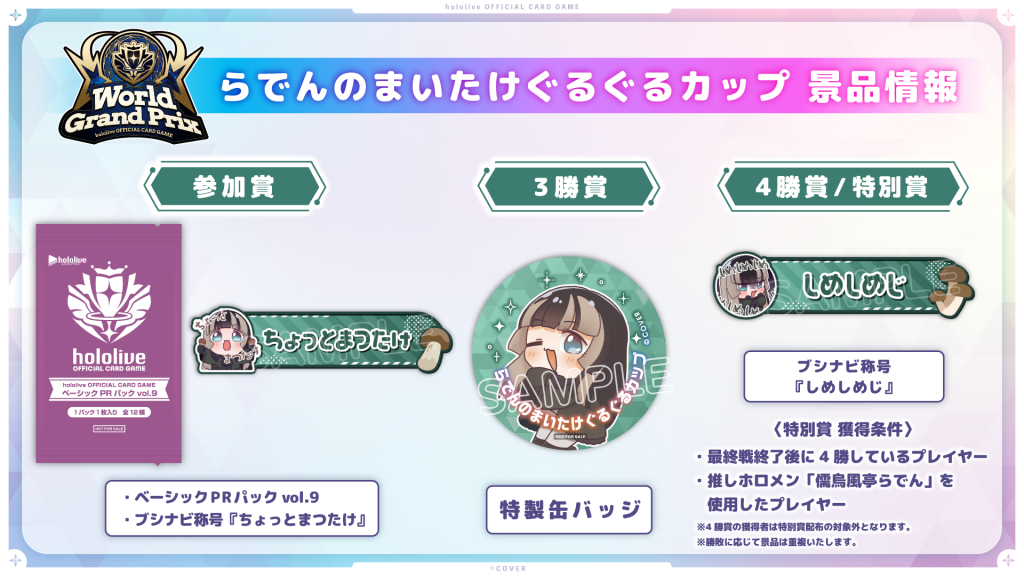 また、大会で入賞された方には記念写真撮影をお願いさせていただく場合や、入賞者のデッキレシピは公式HPおよびSNS等へ掲載することがございます。